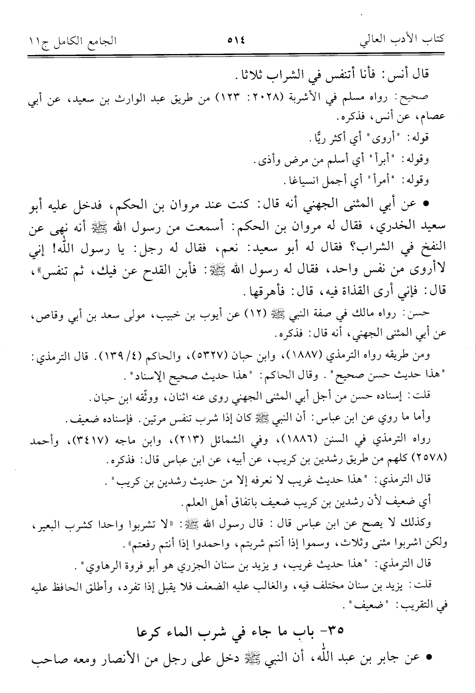 ٣٥ - باب ما جاء في شرب الماء كرعا