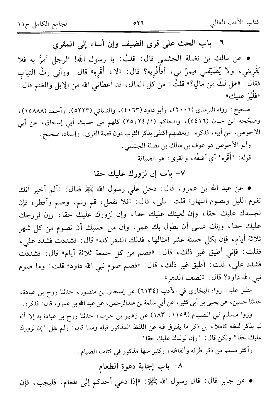 كتاب الجامع الكامل في الحديث الصحيح الشامل المرتب على أبواب الفقه (اسم الجزء: 11)