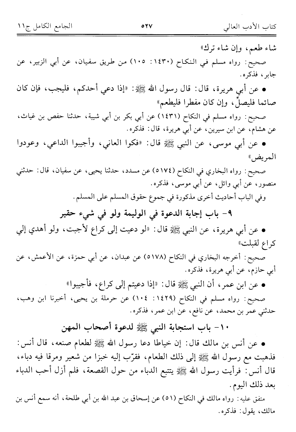 كتاب الجامع الكامل في الحديث الصحيح الشامل المرتب على أبواب الفقه (اسم الجزء: 11)