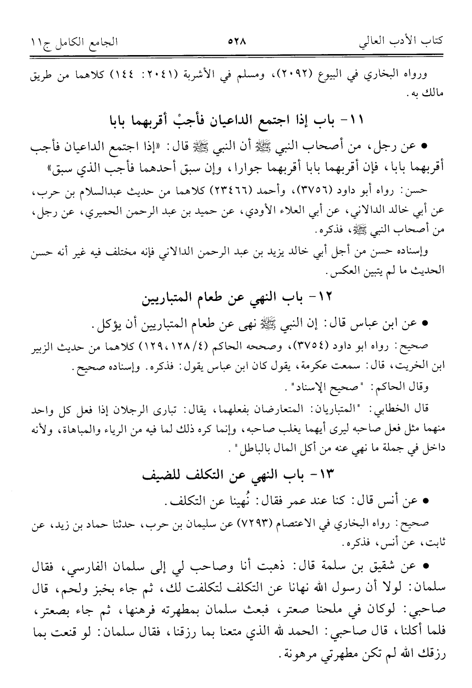 كتاب الجامع الكامل في الحديث الصحيح الشامل المرتب على أبواب الفقه (اسم الجزء: 11)