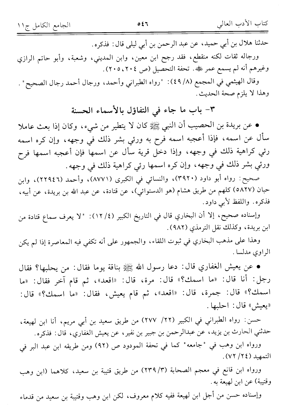 ٣ - باب ما جاء في التفاؤل بالأسماء الحسنة