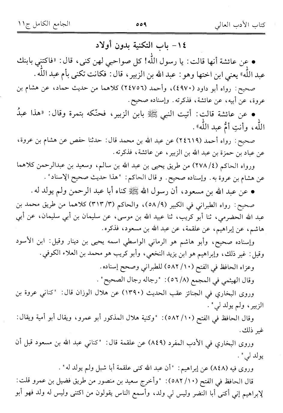 ١٤ - باب التكنية بدون أولاد