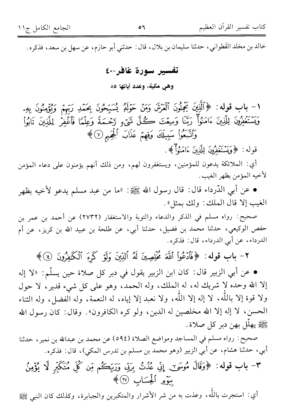 ٤٠ - تفسير سورة غافر وهي مكية، وعدد آياتها ٨٥