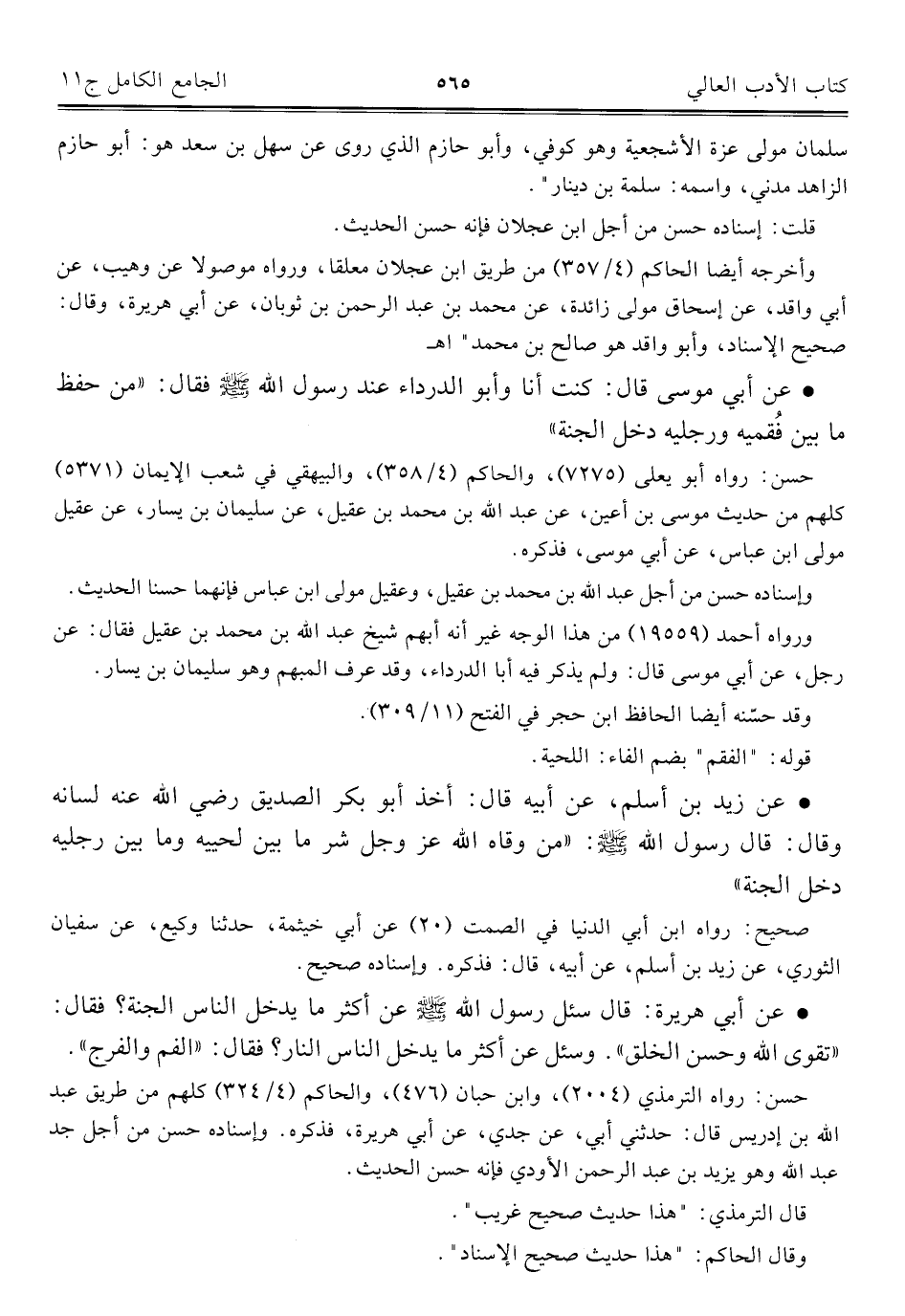 كتاب الجامع الكامل في الحديث الصحيح الشامل المرتب على أبواب الفقه (اسم الجزء: 11)