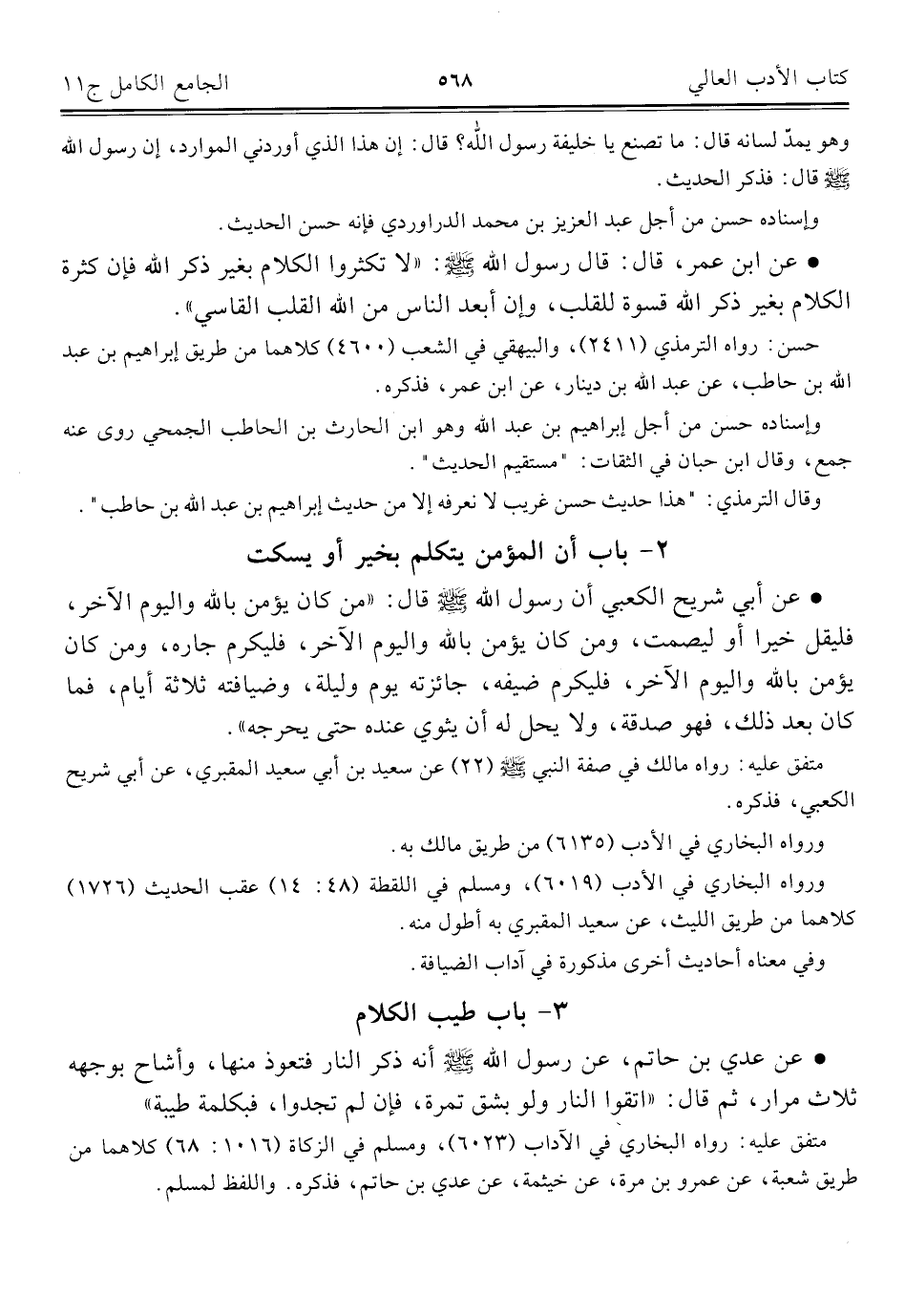 ٢ - باب أن المؤمن يتكلم بخير أو يسكت