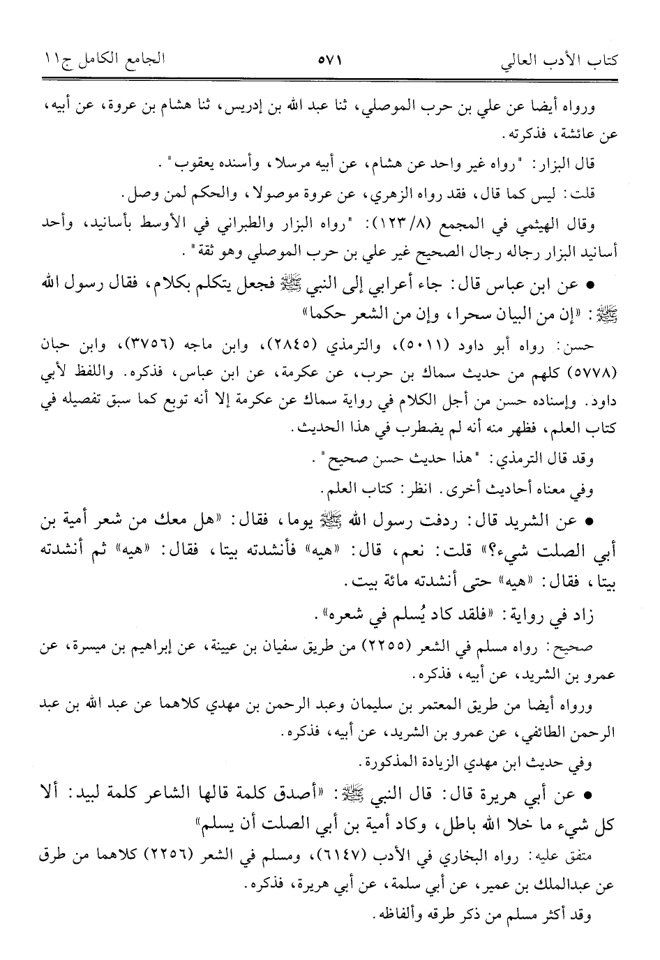 كتاب الجامع الكامل في الحديث الصحيح الشامل المرتب على أبواب الفقه (اسم الجزء: 11)