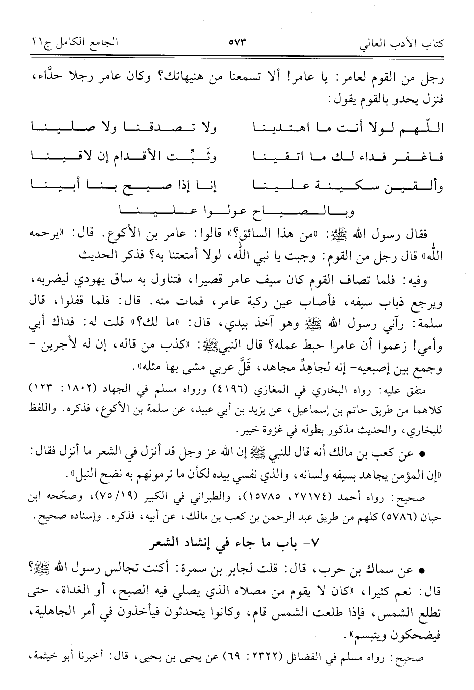٧ - باب ما جاء في إنشاد الشعر