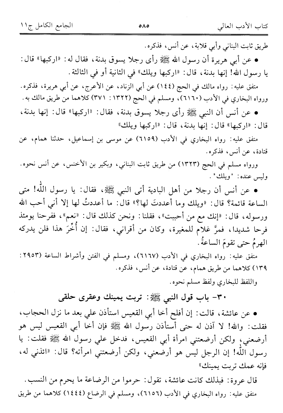 كتاب الجامع الكامل في الحديث الصحيح الشامل المرتب على أبواب الفقه (اسم الجزء: 11)