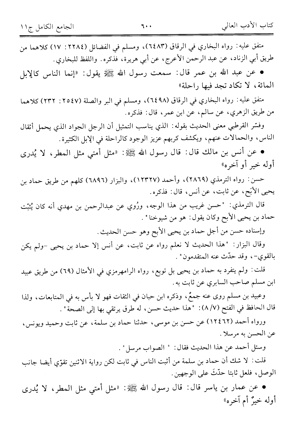 كتاب الجامع الكامل في الحديث الصحيح الشامل المرتب على أبواب الفقه (اسم الجزء: 11)
