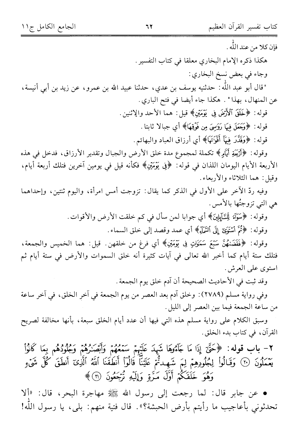 ٢ - باب قوله: {حَتَّى إِذَا مَا جَاءُوهَا شَهِدَ عَلَيْهِمْ سَمْعُهُمْ وَأَبْصَارُهُمْ وَجُلُودُهُمْ بِمَا كَانُوا يَعْمَلُونَ (٢٠) وَقَالُوا لِجُلُودِهِمْ لِمَ شَهِدْتُمْ عَلَيْنَا قَالُوا أَنْطَقَنَا اللَّهُ الَّذِي أَنْطَقَ كُلَّ شَيْءٍ وَهُوَ خَلَقَكُمْ أَوَّلَ مَرَّةٍ وَإِلَيْهِ تُرْجَعُونَ (٢١)}