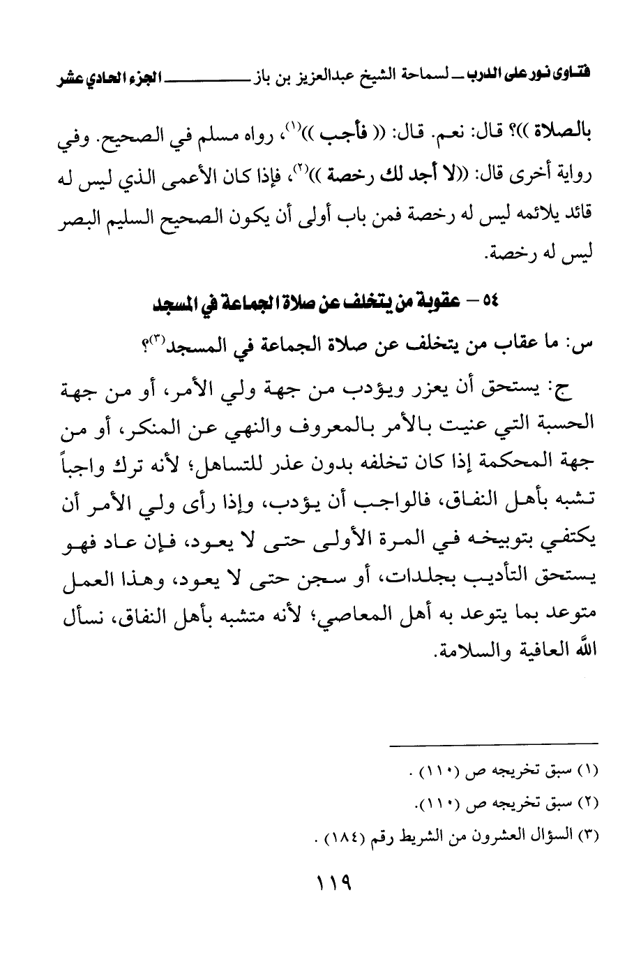 54 – عقوبة من يتخلف عن صلاة الجماعة في المسجد