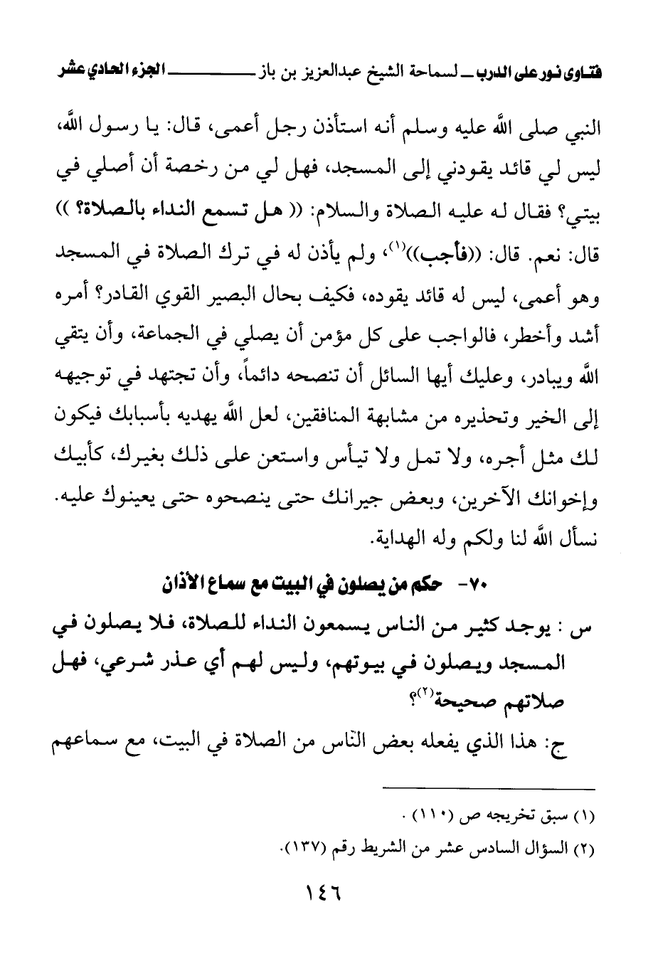 70 - حكم من يصلون في البيت مع سماع الأذان