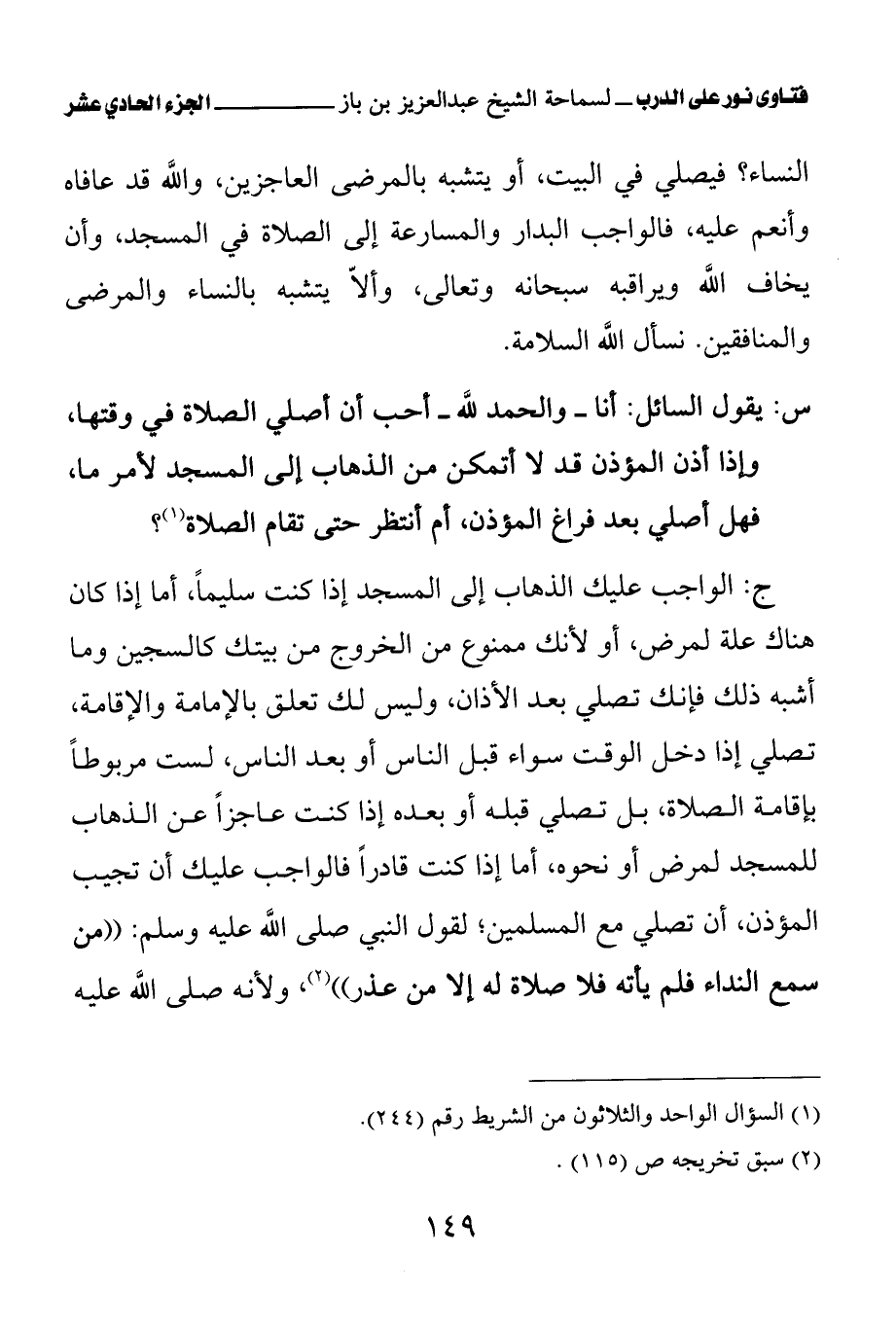 كتاب فتاوى نور على الدرب لابن باز بعناية الشويعر (اسم الجزء: 11)