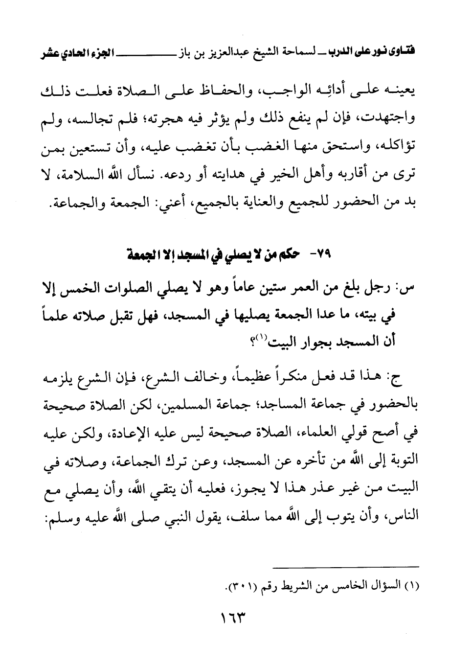79 - حكم من لا يصلي في المسجد إلا الجمعة