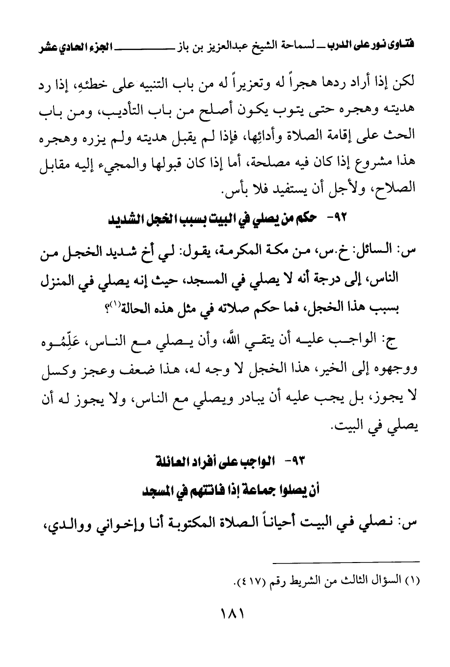 93 - الواجب على أفراد العائلة أن يصلوا جماعة إذا فاتتهم في المسجد
