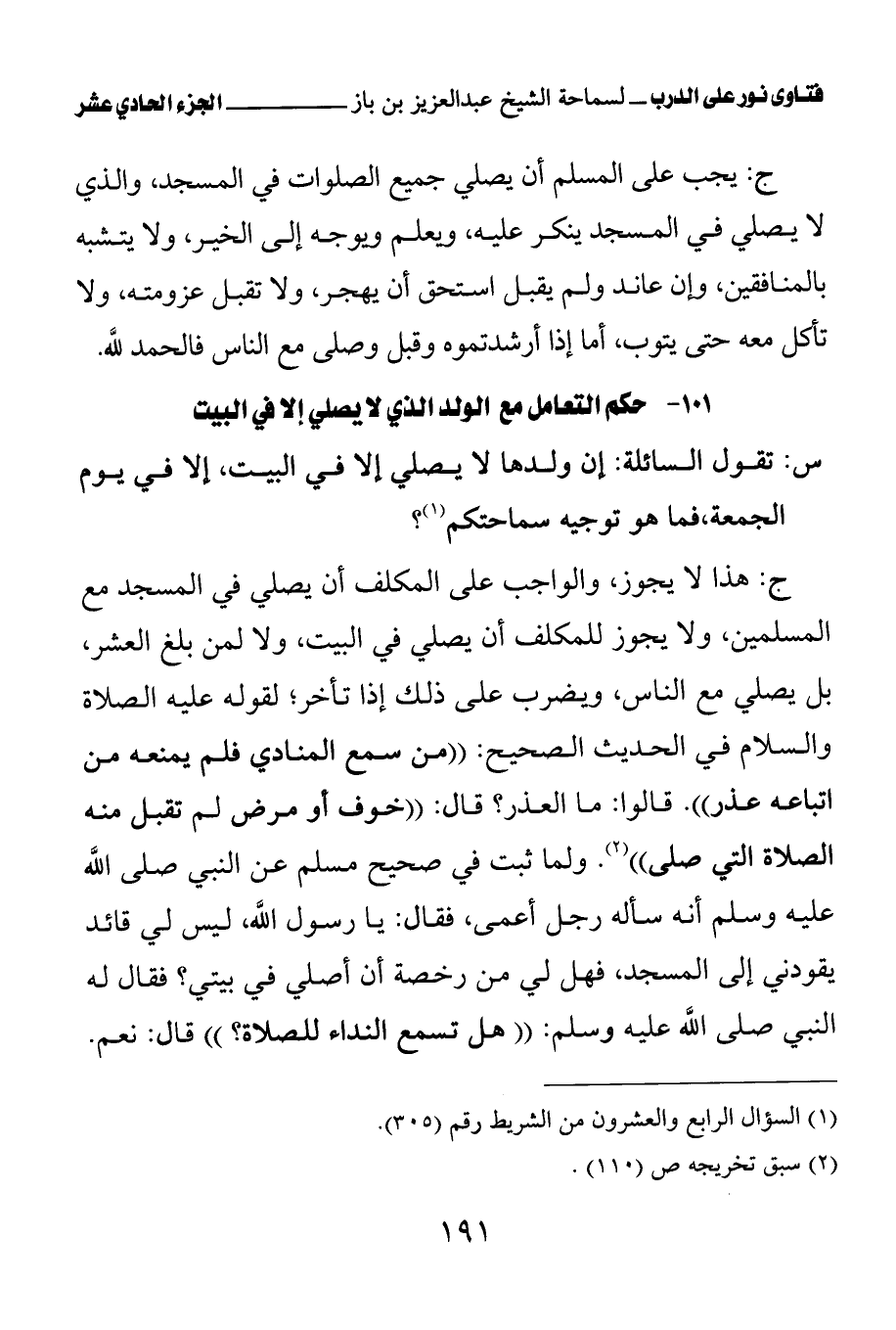 (¬1) السؤال الرابع والعشرون من الشريط رقم (305).