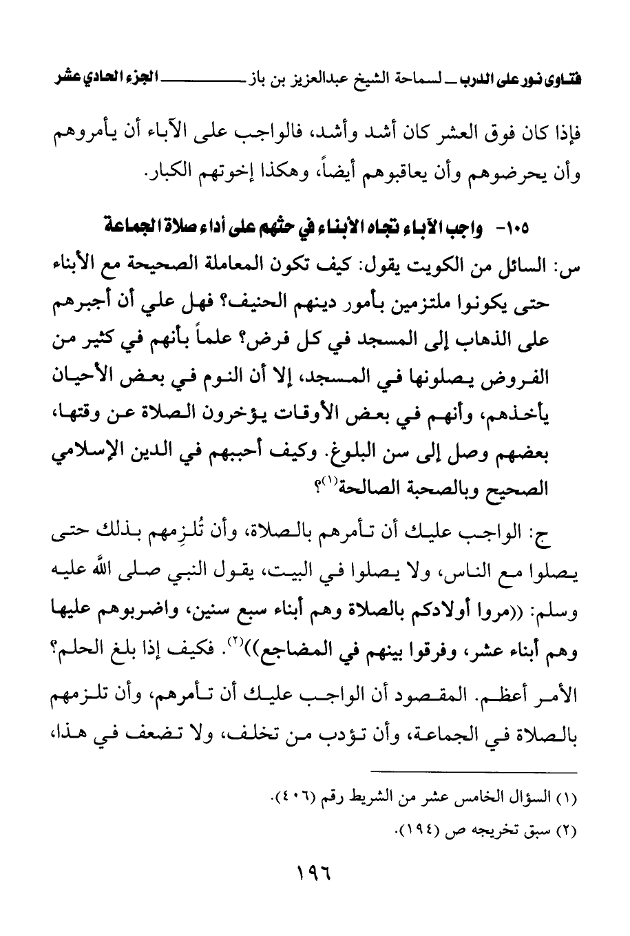 105 - واجب الآباء تجاه الأبناء في حثهم على أداء صلاة الجماعة