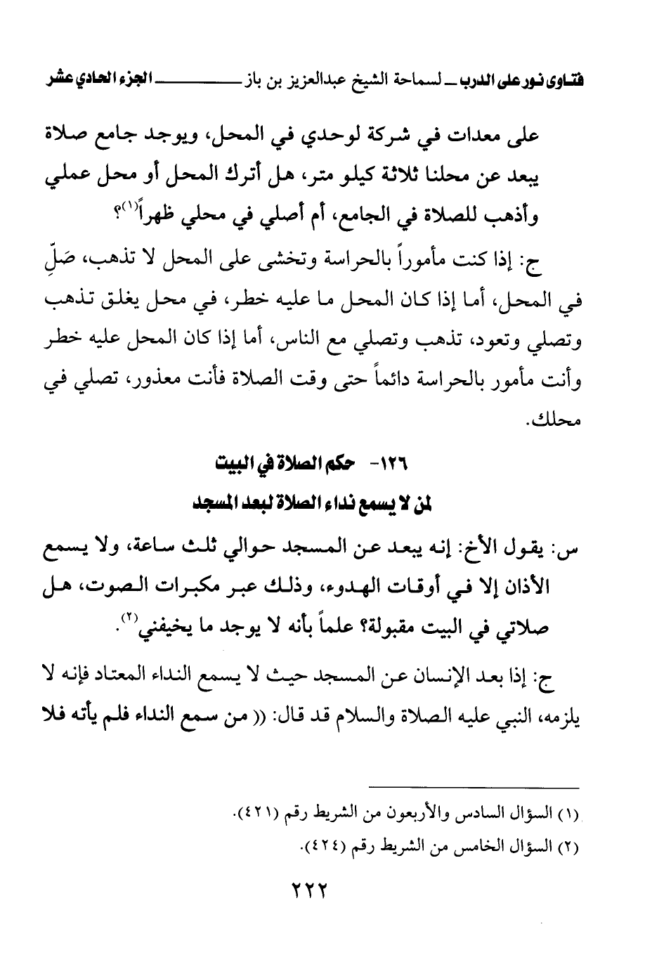 126 - حكم الصلاة في البيت لمن لا يسمع نداء الصلاة لبعد المسجد