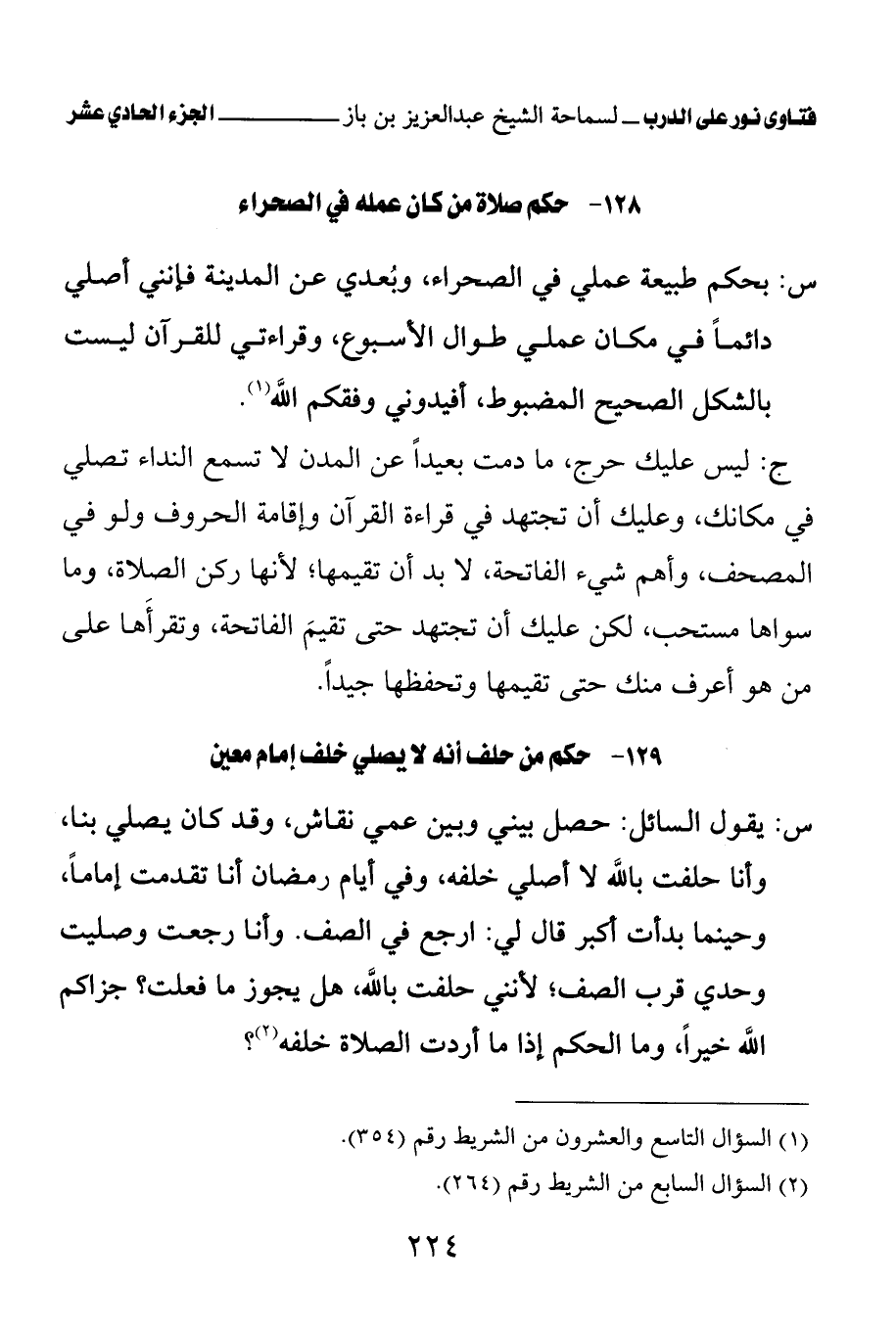 128 - حكم صلاة من كان عمله في الصحراء