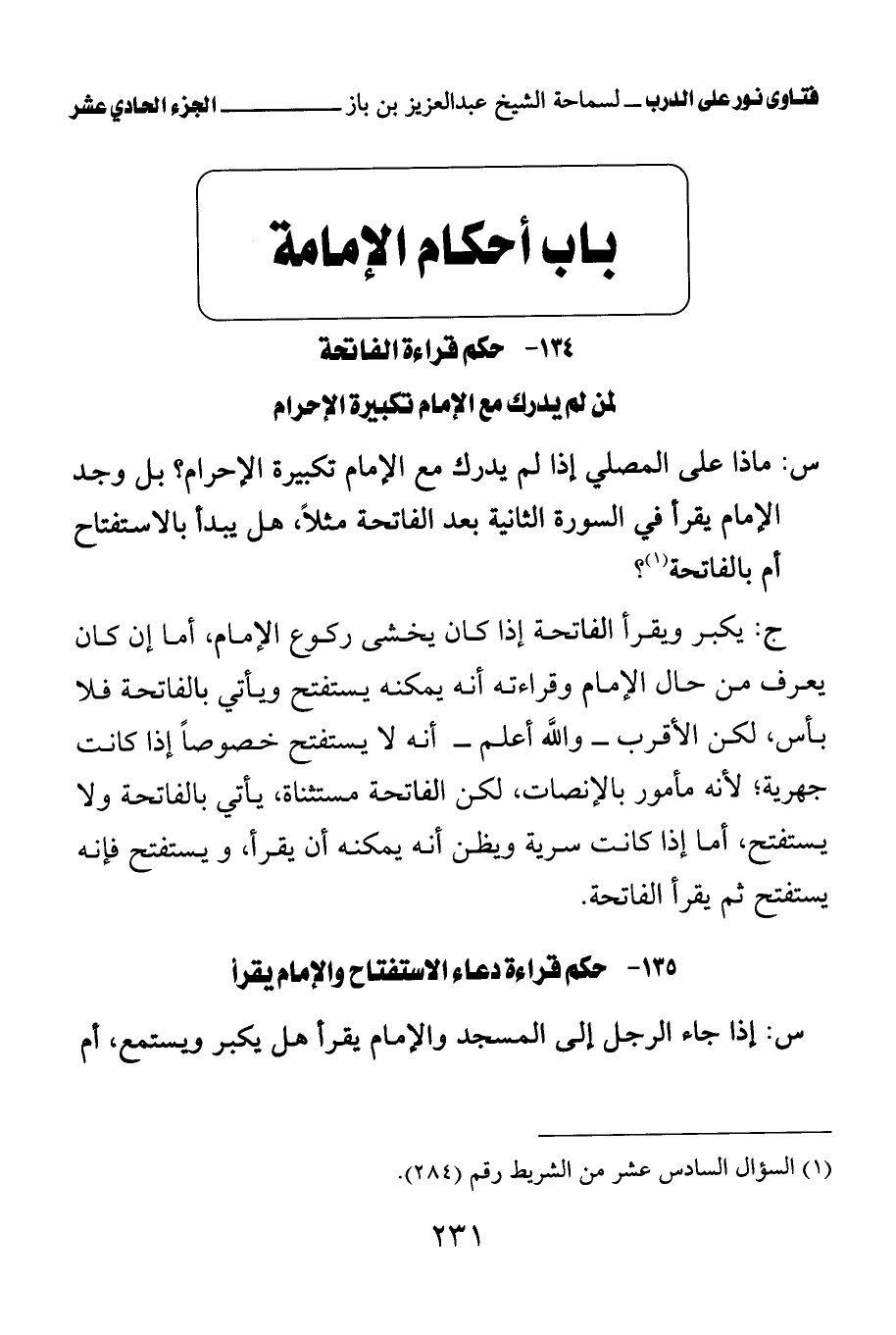134 - حكم قراءة الفاتحة لمن لم يدرك مع الإمام تكبيرة الإحرام