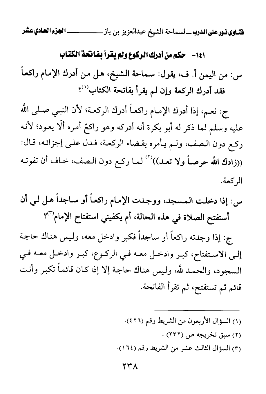 141 - حكم من أدرك الركوع ولم يقرأ بفاتحة الكتاب