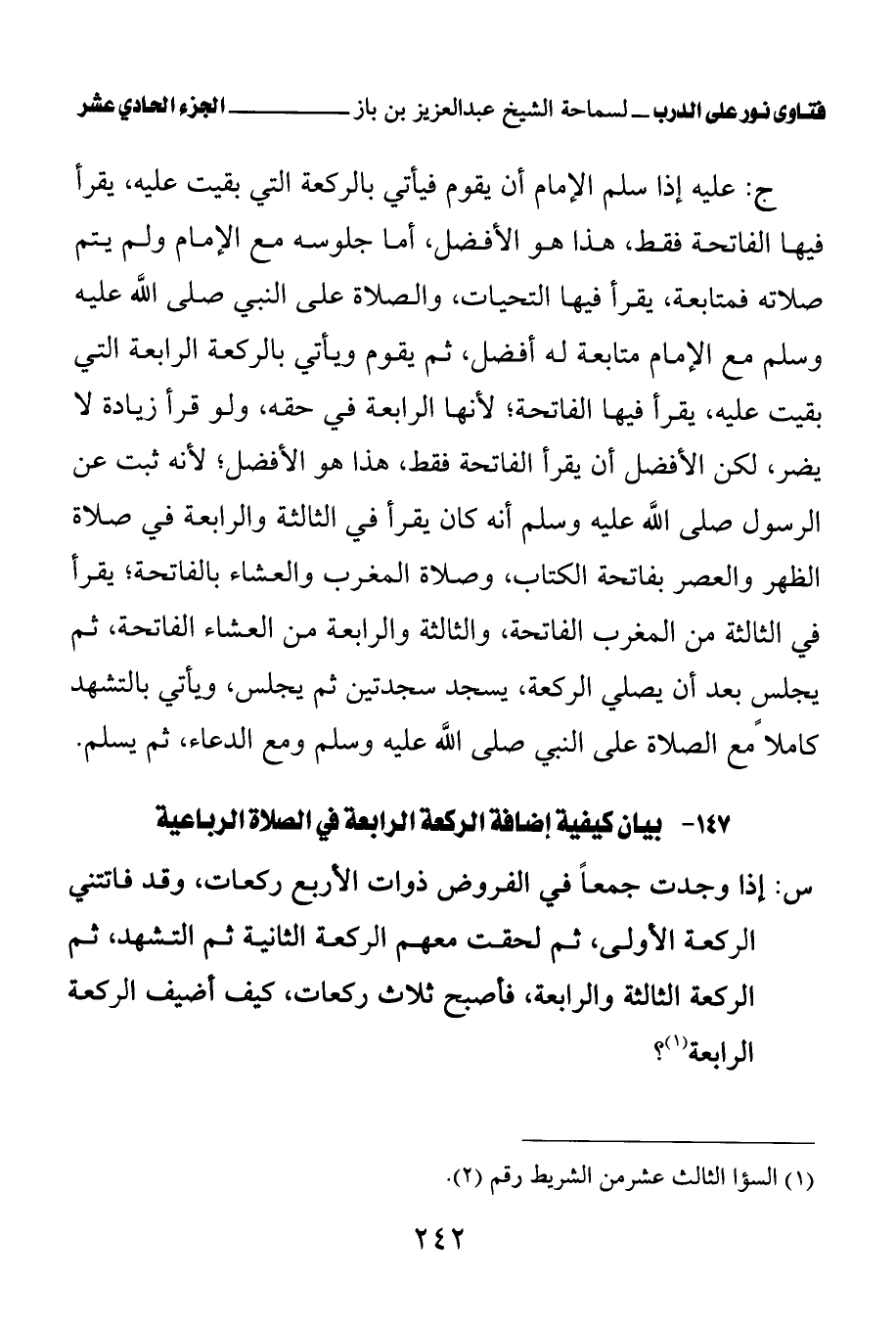 147 - بيان كيفية إضافة الركعة الرابعة في الصلاة الرباعية