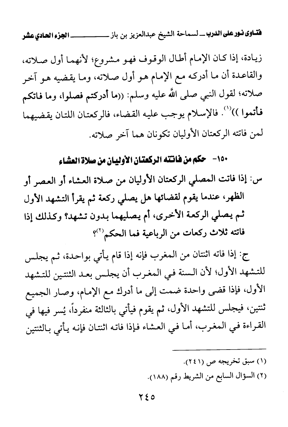 150 - حكم من فاتته الركعتان الأوليان من صلاة العشاء
