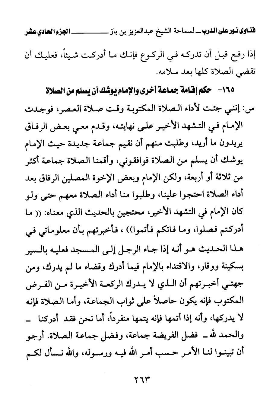 165 - حكم إقامة جماعة أخرى والإمام يوشك أن يسلم من الصلاة