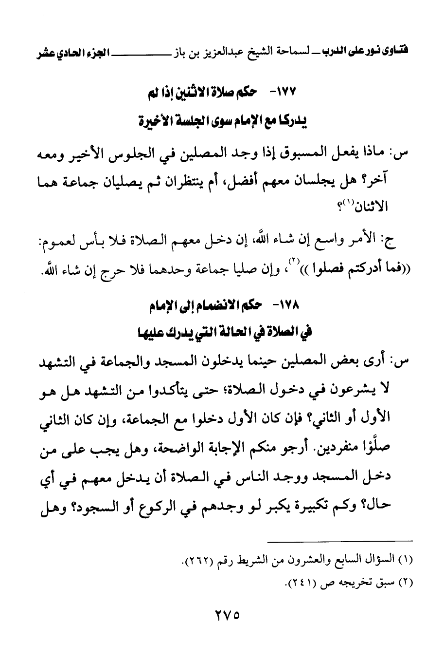 178 - حكم الانضمام إلى الإمام في الصلاة في الحالة التي يدرك عليها