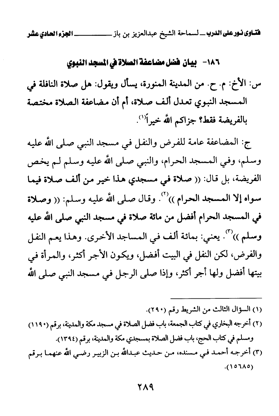 كتاب فتاوى نور على الدرب لابن باز بعناية الشويعر (اسم الجزء: 11)