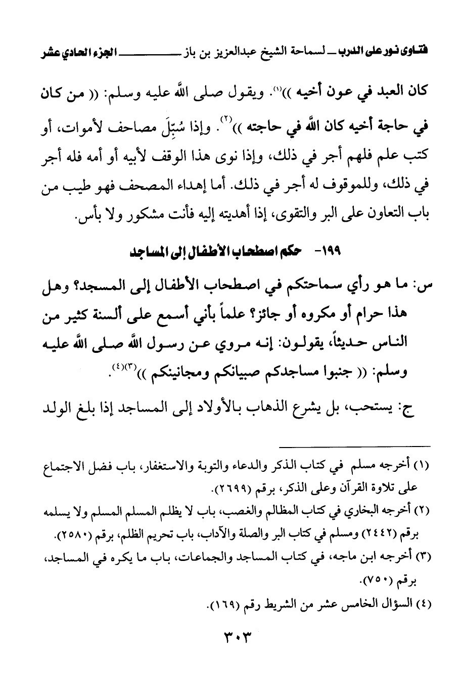 كتاب فتاوى نور على الدرب لابن باز بعناية الشويعر (اسم الجزء: 11)