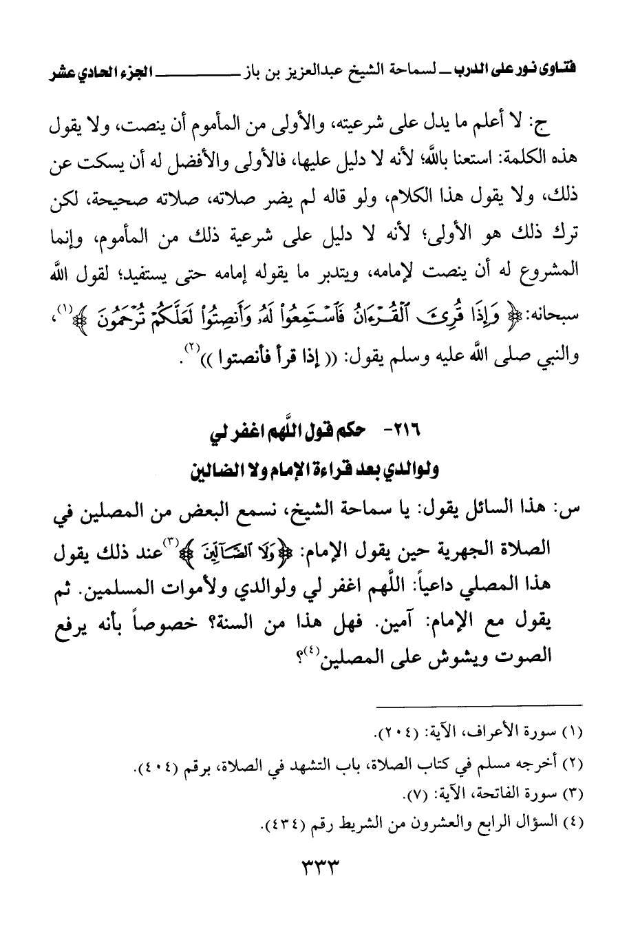 216 - حكم قول اللهم اغفر لي ولوالدي بعد قراءة الإمام {وَلَا الضَّالِّينَ} (¬1)