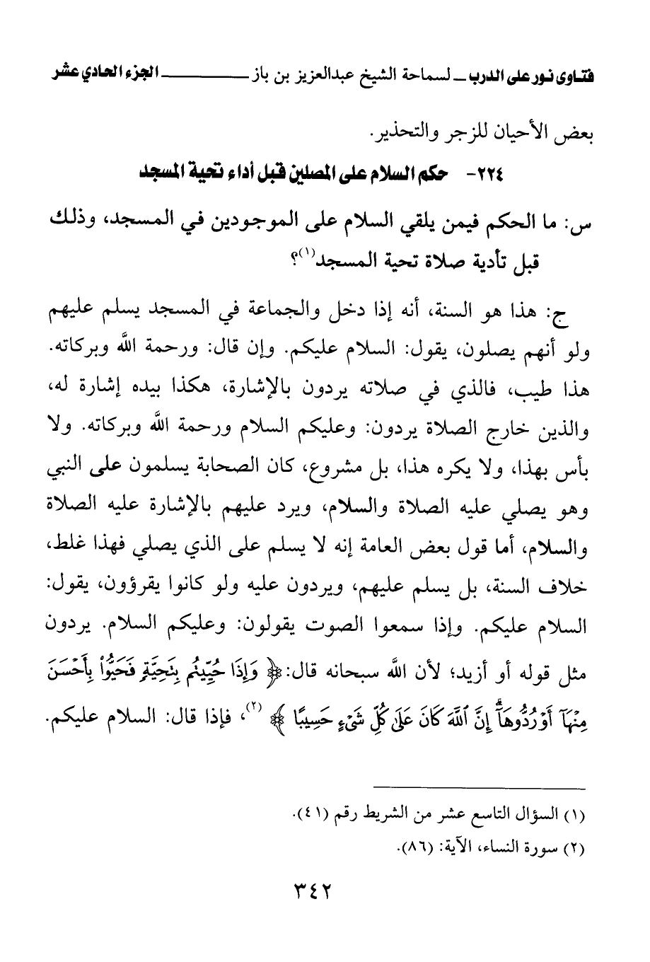كتاب فتاوى نور على الدرب لابن باز بعناية الشويعر (اسم الجزء: 11)