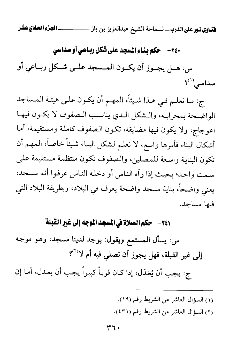 240 - حكم بناء المسجد على شكل رباعي أو سداسي