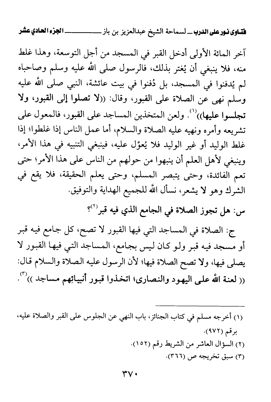 كتاب فتاوى نور على الدرب لابن باز بعناية الشويعر (اسم الجزء: 11)