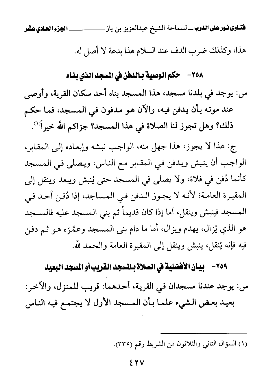 258 - حكم الوصية بالدفن في المسجد الذي بناه