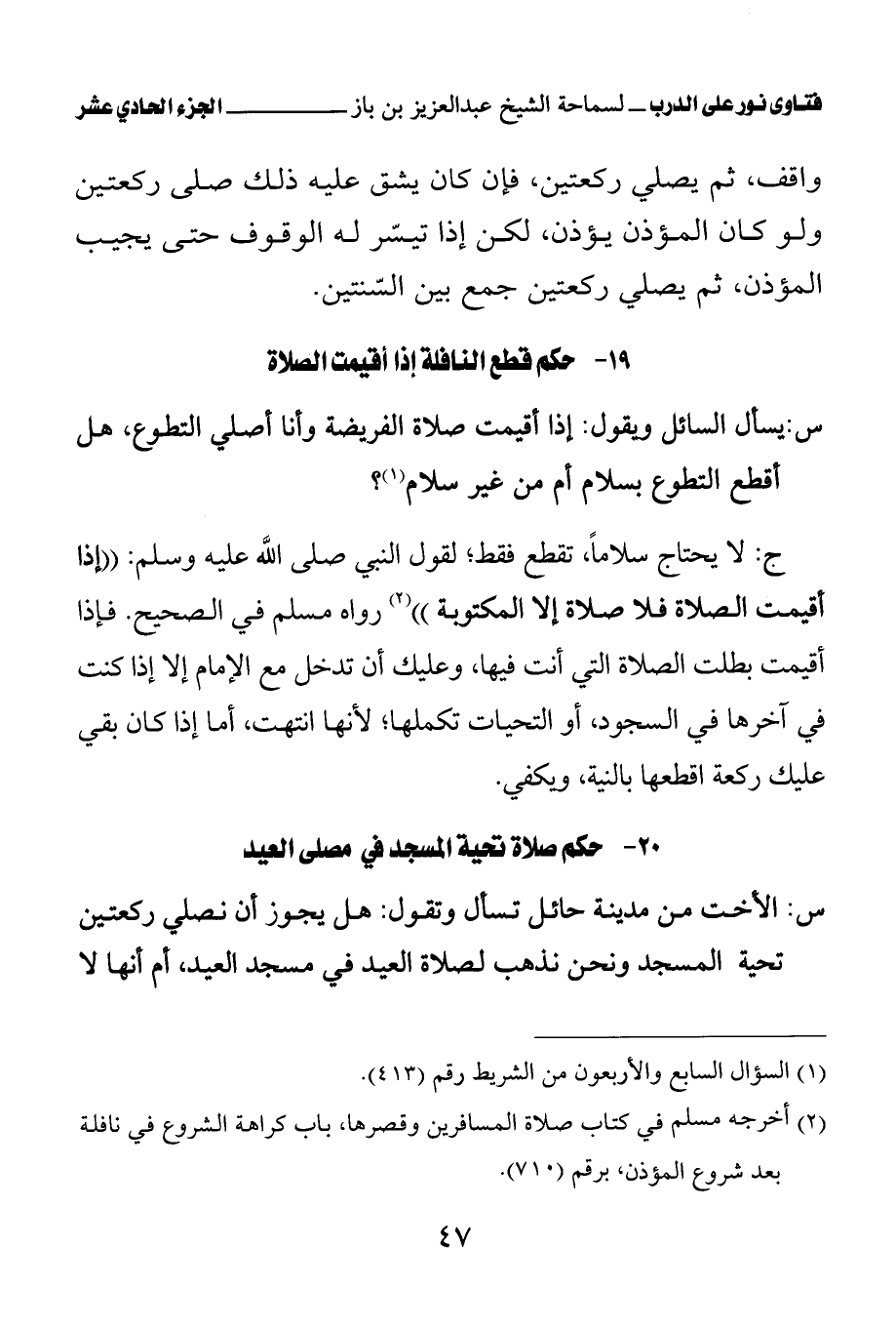 19 - حكم قطع النافلة إذا أقيمت الصلاة