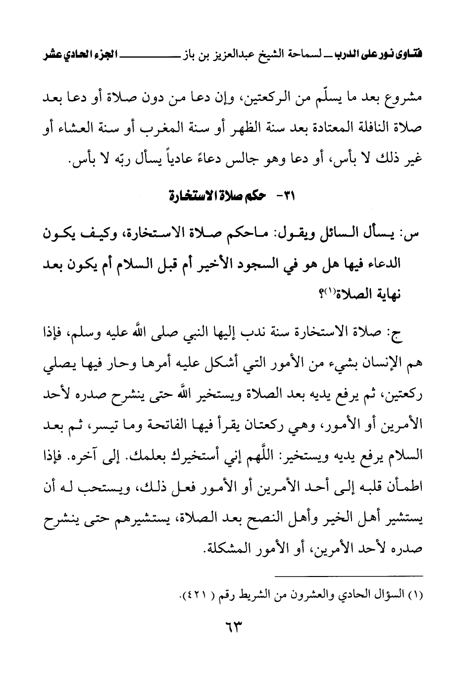 (¬1) السؤال الحادي والعشرون من الشريط رقم (421).