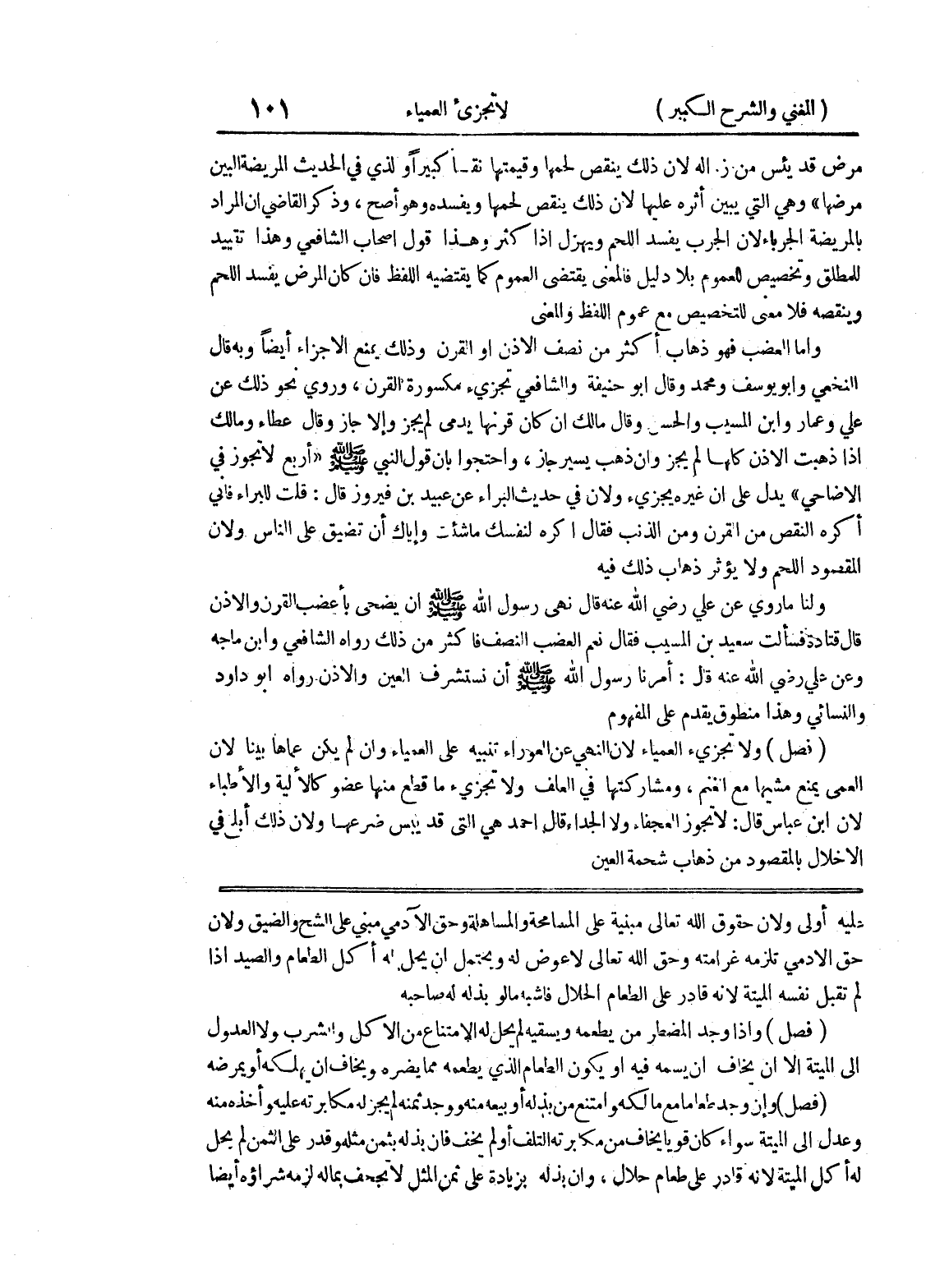 عليه أولى لأن حقوق الله تعالى مبنية على المسامحة والمساهلة وحق الآدمي مبني على الشح والضيق ولأن حق الآدمي تلزمه غرامته وحق الله تعالى لا عوض له ويحتمل أن يحل له أكل الطعام والصيد إذا لم تقبل نفسه الميتة لأنه قادر على الطعام الحلال فأشبه ما لو بذله له صاحبه (فصل) واذا وجد المضطر من يطعمه ويسقيه لم يحل له الامتناع من الأكل والشرب ولا العدول إلى الميتة إلا أن يخاف أن يسمه فيه أو يكون الطعام الذي يطعمه مما يضره ويخاف أن يهلكه أو يمرضه (فصل) وإن وجد طعاما مع مالكه وامتنع من بذله أو بيعه منه ووجد ثمنه لم يجز له مكابرته عليه وأخذه منه وعدل إلى الميتة سواء كان قوياً يخاف من مكابرته التلف أو لم يخف فإن بذله بثمن مثله وقدر على الثمن لم يحل له أكل الميتة لأنه قادر على طعام حلال، وإن بذله بزيادة على ثمن المثل لا تجحف بماله لزمه شراؤه أيضاً