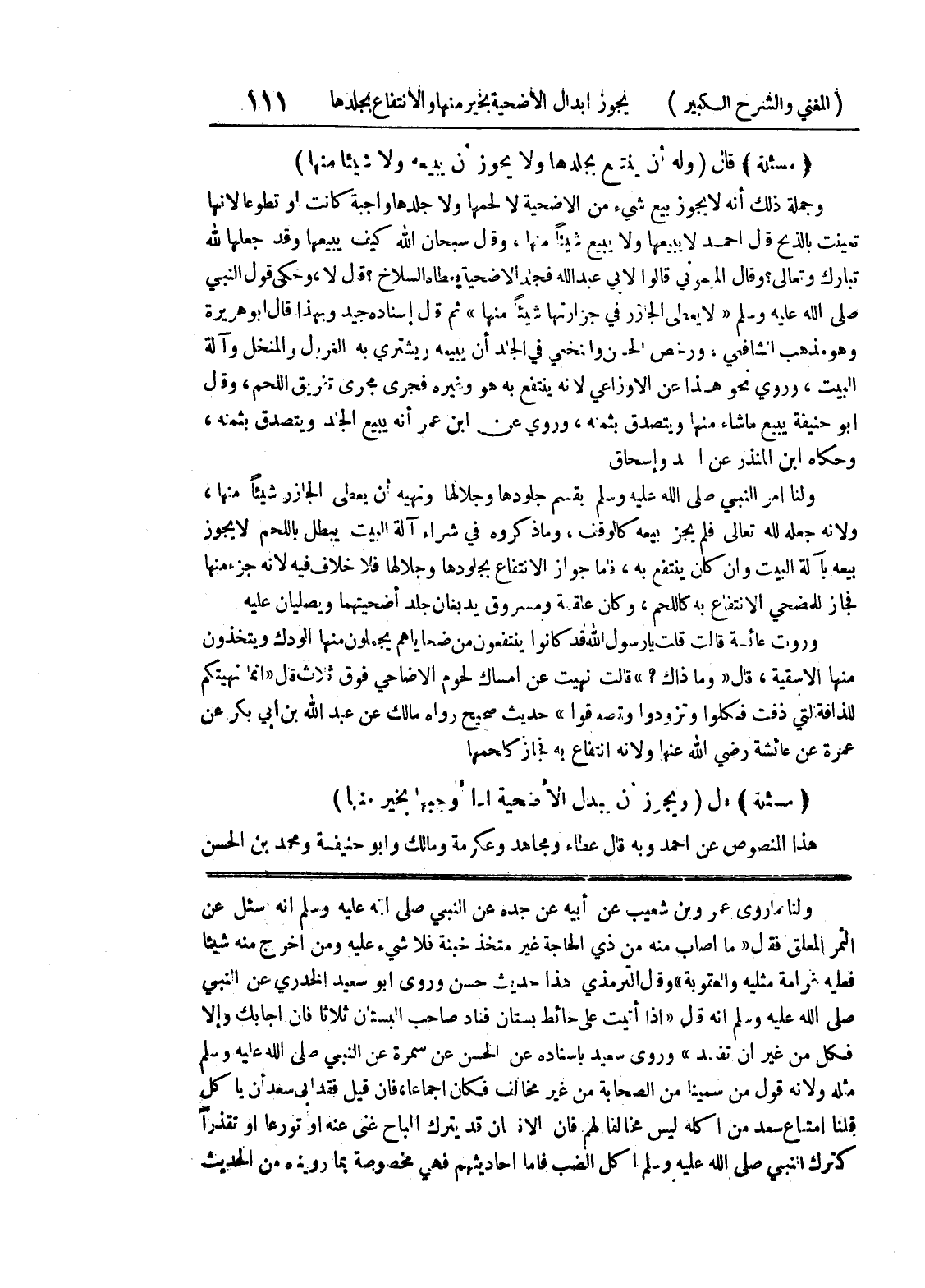 ولنا ما روى عمرو بن شعيب عن أبيه عن جده عن النبي صلى الله عليه وسلم أنه سئل عن الثمر المعلق فقال " ما أصاب منه من ذي الحاجة غير متخذ خبنة فلا شئ عليه ومن أخرج منه شيئا فعليه غرامة مثليه والعقوبة " وقال الترمذي هذا حديث حسن وروى أبو سعيد الخدري عن النبي صلى الله عليه وسلم أنه قال " إذا أتيت على حائط بستان فناد صاحب البستان ثلاثاً فإن أجابك وإلا فكل من غير أن تفيد " وروى سعيد بإسناده عن الحسن عن سمرة عن النبي صلى الله عليه وسلم مثله ولأنه قول من سمينا من الصحابة من غير مخالف فكان اجماعا، فإن قيل فقد أبي سعد أن يأكل قلنا امتناع سعد من أكله ليس مخالفاً لهم فإن الانسان قد يترك المباح غنى عنه أو تورعا او تقذراً