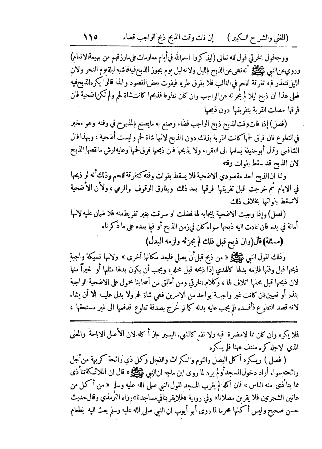 فلا يكره وإن كان مما لا مضره فيه ولا نفع كالشئ اليسير جاز أكله لأن الأصل الإباحة والمعنى الذي لأجله كره منتف ههنا فلم يكره (فصل) ويكره أكل البصل والثوم والكراث والفجل وكل ذي رائحة كريهة من أجل رائحته سواء أراد دخول المسجد أو لم يرد لما روى ابن ماجة أن النبي صلى الله عليه وسلم " قال إن الملائكة تتأذى مما يتأذى منه الناس " فان أكله لم يقرب المسجد لقول النبي صلى الله عليه وسلم " من أكل من هاتين الشجرتين فلا يقربن مصلانا " وفي رواية " فلا يقربنا في مساجدنا " رواه الترمذي وقال حديث حسن صحيح وليس أكلها محرماً لما روى أبو أيوب أن النبي صلى الله عليه وسلم بعث إليه بطعام