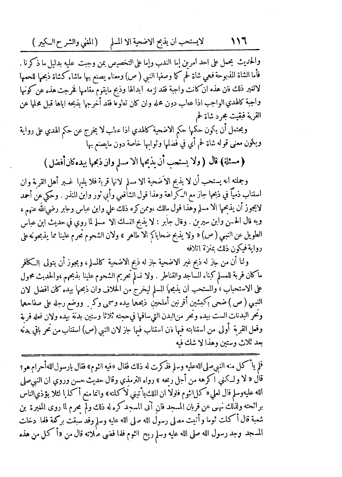 فلم يأكل منه النبي صلى الله عليه وسلم فذكرت له ذلك فقال " فيه الثوم " فقال يا رسول الله أحرام هو؟ قال " لا ولكني أكرهه من أجل ريحه " رواه الترمذي وقال حديث حسن وروي أن النبي صلى الله عليه وسلم قال لعلي " كل الثوم فلولا أن الملك يأتيني لأكلته " وإنما منع أكلها لئلا يؤذي الناس برائحته ولذلك نهى عن قربان المسجد فإن أتى المسجد كره له ذلك ولم يحرم لما روى المغيرة بن شعبة قال أكلت ثوماً وأتيت مصلى رسول الله صلى الله عليه وسلم وقد سبقت بركعة فلما دخلت المسجد وجد رسول الله صلى الله عليه وسلم ريح الثوم فلما قضى صلاته قال من " أكل من هذه