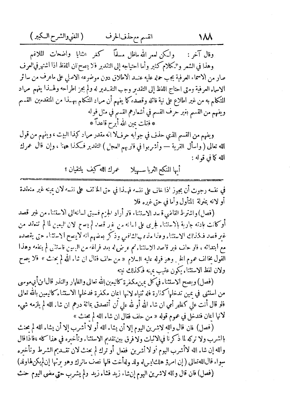 في نفسه رجوت أن يجوز إذا خاف على نفسه فهذا في حق الخائف على نفسه لأن يمينه غر منعقدة أو لأنه بمنزلة المتأول وأما في حق غيره فلا (فصل) واشترط القاضي قصد الاستثناء فلو أراد الجزم فسبق لسانه إلى الاستثناء من غير قصد أو كانت بمادته جاربة بالاستثناء فجرى على لسانه من غير قصد لم يصح لأن اليمين لما لم تنعقد من غير قصد فكذلك الاستثناء وهذا مذهب الشافعي وذكر بعضهم أنه لا يصح الاستثناء حتى يقصده مع ابتدائه، فلو حلف غير قاصد للاستثناء ثم عرض له بعد فراغه من اليمين فاستثنى لم ينفعه وهذا القول يخالف عموم الخبر هو قوله عليه السلام " من حلف فقال إن شاء الله لم يحنث " فلا يصح ولأن لفظ الاستثناء يكون عقيب يمينه فكذلك نيته (فصل) ويصح الاستثناء في كل يمين مكفرة كاليمين بالله تعالى والظهار والنذر قال ابن أبي موسى