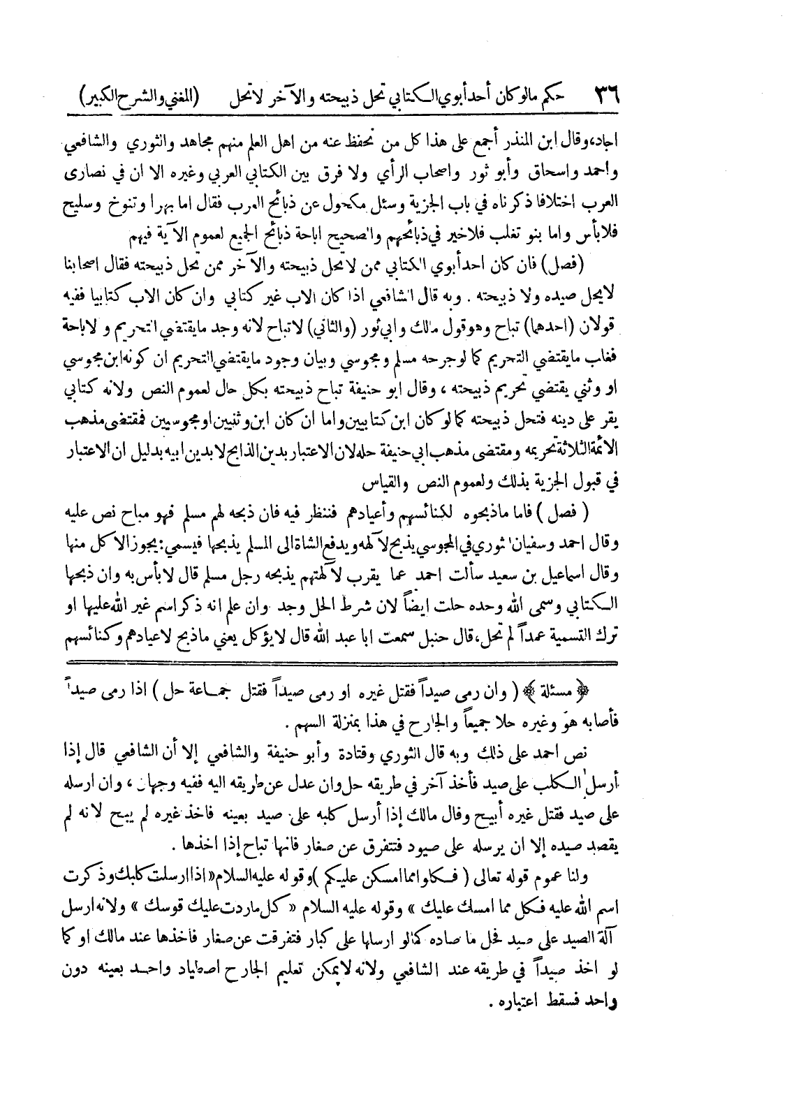 نص أحمد على ذلك وبه قال الثوري وقتادة وأبو حنيفة والشافعي إلا أن الشافعي قال إذا أرسل الكلب على صيد فأخذ آخر في طريقه حل وإن عدل عن طريقه إليه ففيه وجهان، وإن أرسله على صيد فقتل غيره أبيح وقال مالك إذا ارسل كلبه على صيد بعينه فأخذ غيره لم يبح لأنه لم يقصد صيده إلا أن يرسله على صيود فتفرق عن صغار فإنها تباح إذا أخذها.