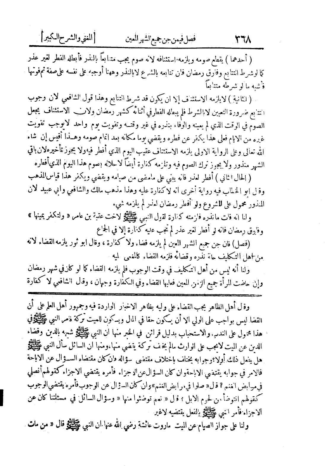 وقال أهل الظاهر يجب القضاء على وليه بظاهر الاخبار الواردة فيه وجمهور أهل العلم على أن القضا ليس بواجب على الولي إلا أن يكون حقاً في المال ويكون للميت تركة فأمر النبي صلى الله عليه وسلم في هذا محمول على الندب والاستحباب بدليل قرائن في الخبر منها أن النبي صلى الله عليه وسلم شبهه بالدين وقضاء الدين عن الميت لا يجب على الوارث ما لم يخف تركة يقضي منها، ومنها أن السائل سأل النبي صلى الله عليه وسلم هل يفعل ذلك أولا؟ وجوابه يختلف بإختلاف مقتضى سؤاله فإن كان مقتضاه السؤال عن الاباحة فالامر في جوابه يقتضي الاباحة وان كان السؤال عن الاجزاء فأمره يقتضي الاجزاء كقولهم أنصلي في مرابض الغنم؟ قال " صلوا في مرابض الغنم " وان كان السؤال عن الوجوب فأمره يقتضي الوجوب كقولهم انتوضأ من لحوم الابل؟ قال " نعم توضئوا منها " وسؤال السائل في مسئلتنا كان عن الاجزاء فأمر النبي صلى الله عليه وسلم بالفعل يقتضيه لا غير ولنا على جواز الصيام عن الميت ما روت عائشة رضي الله عنها أن النبي صلى الله عليه وسلم قال " من مات