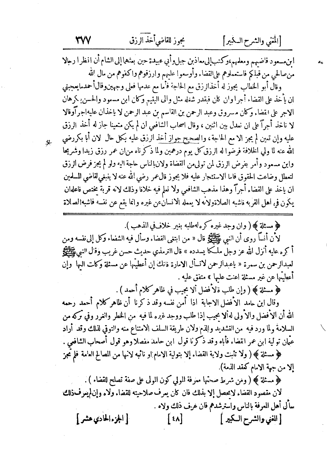 وقال ابن حامد الأفضل الإجابة إذا أمن نفسه وقد ذكرنا أن ظاهر كلام أحمد رحمه الله أن الأفضل والأولى له ألا يجيب إذا طلب ووجد غيره لما فيه من الخطر والغرر وفي تركه من السلامة ولما ورد فيه من التشديد والذم ولأن طريقة السلف الامتناع منه والتوفي لذلك وقد أراد عثمان تولية ابن عمر القضاء فأباه وقد ذكرنا قول ابن حامد مفصلا وهو قول أصحاب الشافعي.