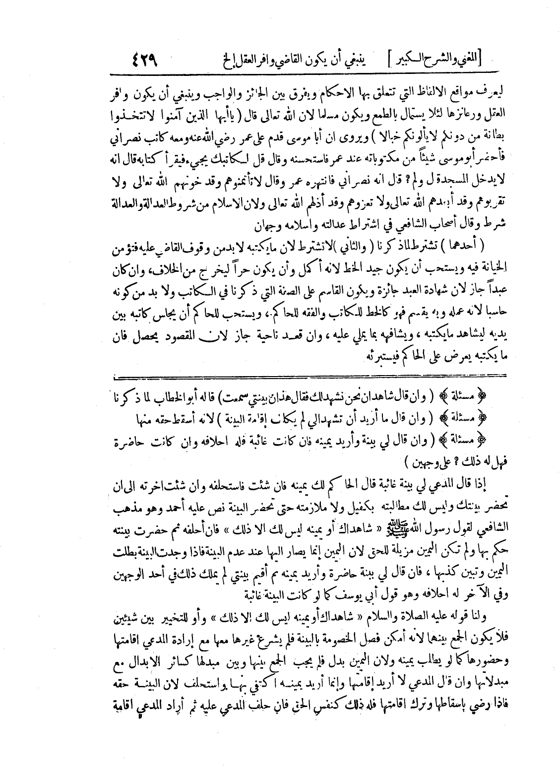 إذا قال المدعي لي بينة غائبة قال الحاكم لك يمينه فإن شئت فاستحلفه وإن شئت أخرته إلى أن تحضر بينتك وليس لك مطالبته بكفيل ولا ملازمته حتى تحضر البينة نص عليه أحمد وهو مذهب الشافعي لقول رسول الله صلى الله عليه وسلم " شاهداك أو يمينه ليس لك إلا ذلك " فإن أحلفه ثم حضرت بينته حكم بها ولم تكن اليمين مزيلة للحق لأن اليمين إنما يصار إليها عند عدم البينة فادا وجدت البينة بطلت اليمين وتبين كذبها، فإن قال لي بينة حاضرة وأريد يمينه ثم أقيم بينتي لم يملك ذلك في أحد الوجهين وفي الآخر له إحلافه وهو قول أبي يوسف كما لو كانت البينة غائبة ولنا قوله عليه الصلاة والسلام " شاهداك أو يمينه ليس لك إلا ذلك " وأو للتخيير بين شيئين فلا يكون الجمع بينهما لأنه أمكن فصل الخصومة بالبينة فلم يشرع غيرها معها مع إرادة المدعي إقامتها وحضورها كما لو يطلب يمينه ولأن اليمين بدل فلم يجب الجمع بينها وبين مبدلها كسائر الأبدال مع مبدلاتها وإن قال المدعي لا أريد إقامتها وإنما أريد يمينه اكتفي بها واستحلف لأن البينة حقه فإذا رضي بإسقاطها وترك إقامتها فله ذلك كنفس الحق فإن حلف المدعى عليه ثم أراد المدعي إقامة