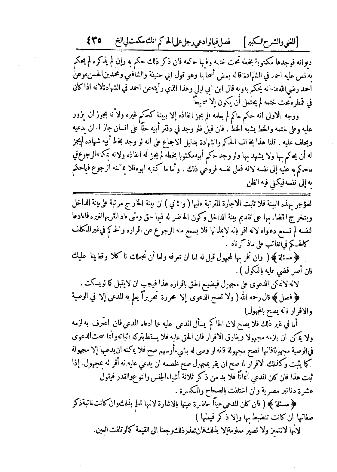 كما يثبت وكذلك الاقرار لما صح أن يقر بمجهول صح لخصمه ان يدعى عليه أنه أقر له بمجهول.