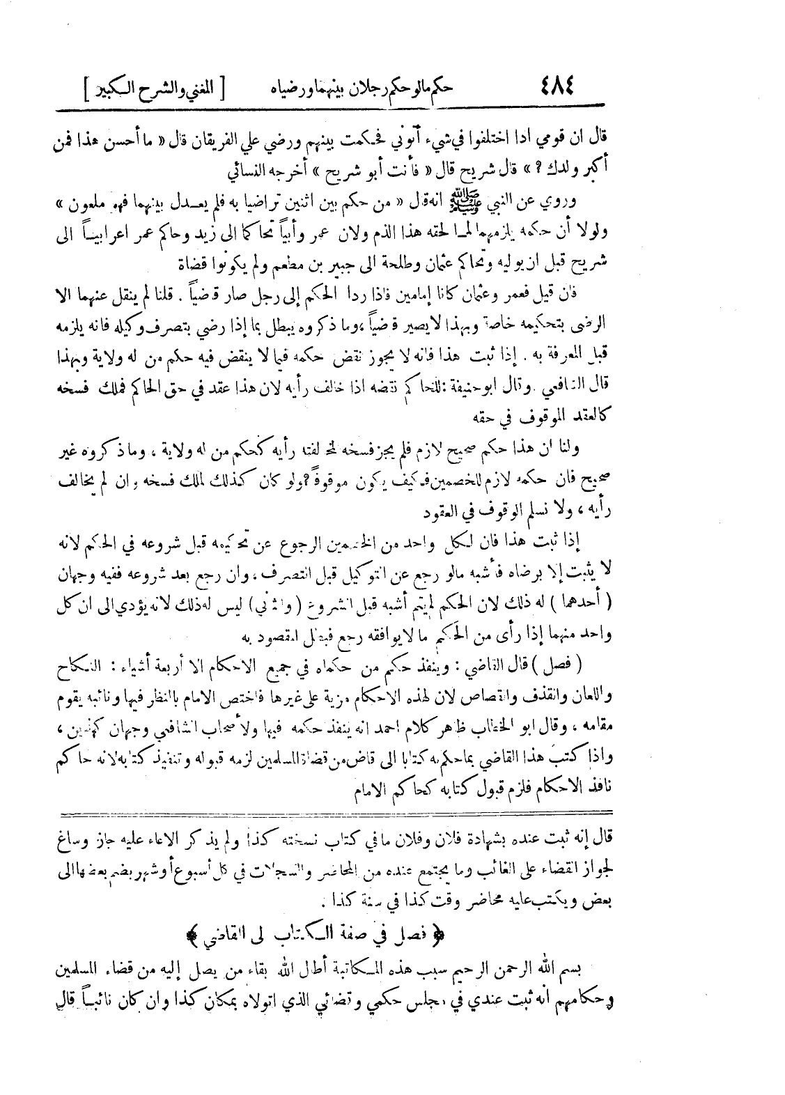 * (فصل في صفة الكتاب لى القاضي) * بسم الله الرحمن الرحيم سبب هذه المكاتبة أطال الله بقاء من يصل إليه من قضاء المسلمين وحكامهم أنه ثبت عندي في مجلس حكمي وقضائي الذي أتولاه بمكان كذا وإن كان نائباً قال