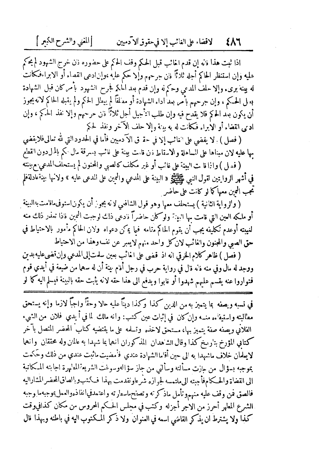في نسبه ويصفه بما يتميز به من الدين كذا وكذا ديناً عليه حالاً وحقاً واجباً لازماً وإنه يستحق مطالبته واستيفاءه منه وإن كان في إثبات عين كتب: وأنه مالك لما في أيدي فلان من الشئ الفلاني ويصفه صفة يتميز بها، مستحق لأخذه وتسلمه على ما يقتضيه كتاب المحضر المتصل بآخر كتابي المؤرخ بتاريخ كذا وقال الشاهدان المذكوران أنهما بما شهدا به عالمان وله محققان وأنهما لا يعلمان خلاف ما شهدا به إلى حين أقاما الشهادة عندي فأمضيت ما ثبت عندي من ذلك وحكمت بموجبه بسؤال من جازت مسألته وسألني من جاز سؤاله وسوغت الشريعة المطهرة إجابته المكاتبة إلى القضاة والحكام فأجبته إلى ملتمسه لجوازه شرعاً وتقدمت بهذا فكتب وبالصاق المحضر المشار اليه فألصق فمن وقف عليه منهم وتأمل ما ذكرته وتصفح ما سطرته واعتمد في انفاذه والعمل بموجبه ما وجبه الشرع المطهر أحرز من الاجر أجز له وكتب في مجلس الحكم المحروس من مكان كذا في وقت كذا ولا يشترط أن يذكر القاضي اسمه في العنوان ولا ذكر المكتوب اليه في باطنه وبهذا قال